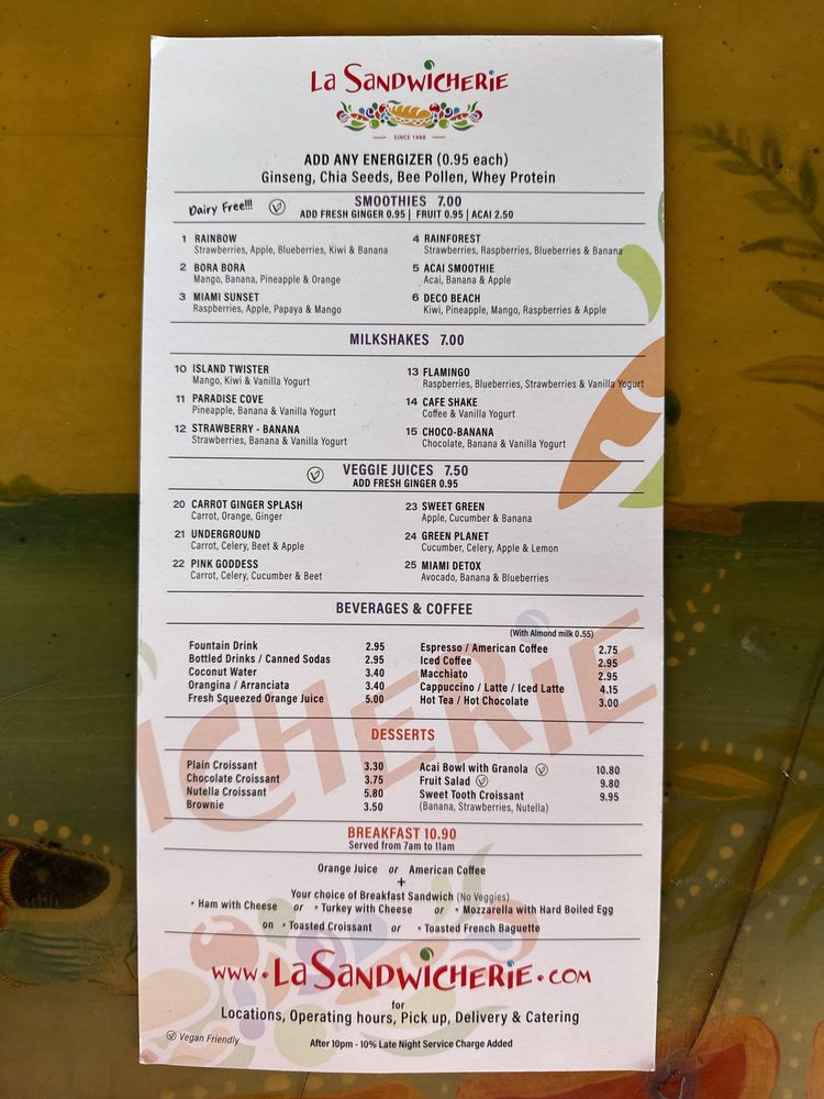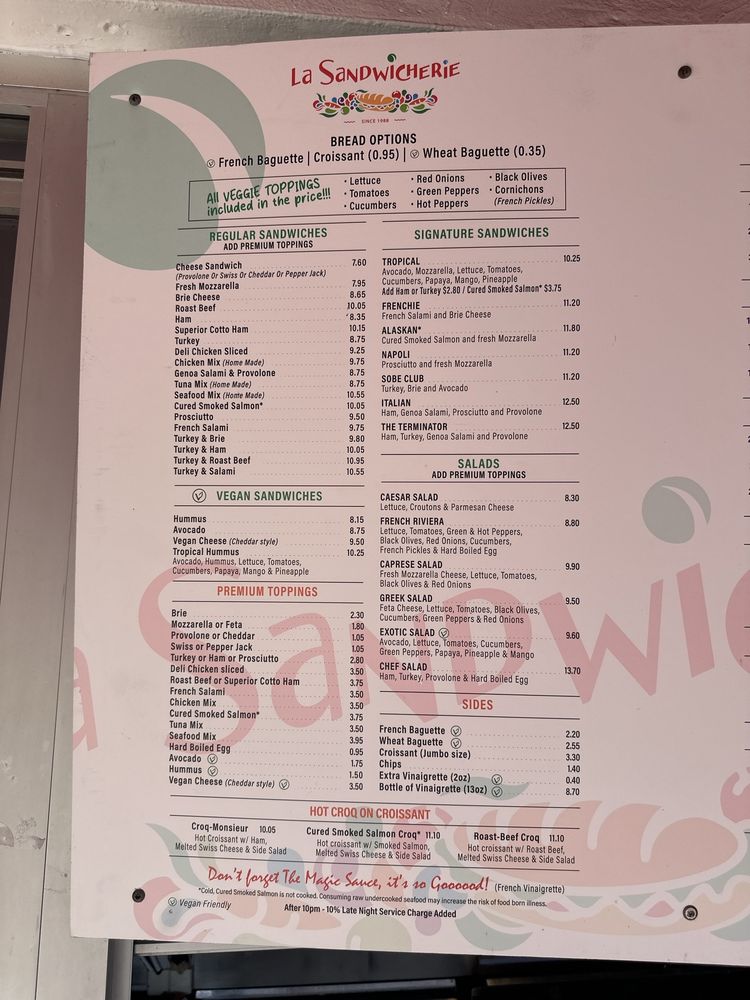 Located in Miami Beach, La Sandwicherie is a sandwich haven offering a wide variety of options for all preferences. From classic choices like ham & cheese to more unique offerings like the Tropical sandwich with avocado, mozzarella, and a mix of fruits, there is something for everyone. The signature sandwiches, such as the Frenchie with French salami and Brie cheese, showcase the creativity and delicious flavors this spot has to offer. With the option to customize your sandwich with extras like avocado or extra cheese, the possibilities are endless. The cozy and casual atmosphere makes it a perfect spot for a quick lunch or a relaxed dinner. With options for delivery and takeout, La Sandwicherie ensures you can enjoy their tasty sandwiches wherever you are. Don't miss out on this Miami Beach gem for a satisfying meal that will leave you coming back for more.